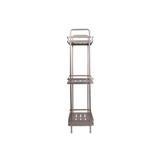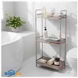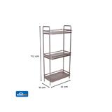 • Three-tier freestanding shelf provides ample space for organizing toiletries and bath accessories.