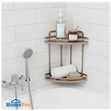 • Two-tier corner shelf design offers ample storage space for multiple bath essentials while maximizing vertical space.