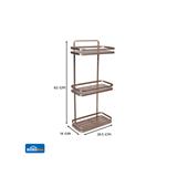 Three-tier wall-mounted shelf provides generous vertical storage for various bathroom items.