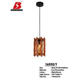 A compact and stylish pendant lamp featuring a durable iron structure with warm wooden detailing and a glass light enclosure, designed for E27 bulbs to deliver a cozy and rustic atmosphere in both residential and commercial spaces.