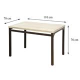 The dining table with a dimension of W110XD70XH76 cm is able to bear the weight up to 30 kg (evenly distributed).