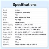 VENTION POWERBANK 10000mAh WITH BUILD-IN USB-C 22.5W BLUE FKAL0-C-TY