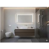 Slim square countertop design delivers a modern and minimalist bathroom look.