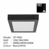 YETPLUS LED SURFACE DOWNLIGHT 9005 12W 3000K BLACK SQUARE