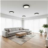 Surface-mounted round black design offers a modern and sleek appearance.
