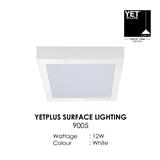 The YETPLUS 9005 Surface Downlight 12W 3000K features warm white illumination, wide beam coverage, and a sleek square white design, making it ideal for modern indoor lighting applications.