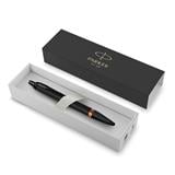 Designed with the modern professional in mind, the functional, smart, and polished Parker IM Vibrant Rings ballpoint pen is sure to stand out in any workplace. By pairing all-black sleek and minimalist finishes with bold, vibrant ring accents, it’s a luxury pen that knows how to make a great first impression through understated style. With over a century of in-house craftsmanship and expertise, this Parker pen features exclusive metal parts adorned with PVD coating that offers superior wear and corrosion resistance—as well as a distinctive look. The modern ballpoint pen uses QUINK ink ballpoint refills, for crisp, steady marks perfect for everyday writing. And with an elegant Parker box, the Parker IM professional pen makes for a memorable gift.