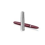 • The Parker 51 Burgundy CT features a streamlined silhouette and iconic hooded stainless-steel nib. Hand assembled using durable Burgundy precious resin, complemented by a stainless steel cap, palladium cap jewel and trims