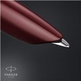 Durable glossy burgundy precious resin barrel and stainless steel cap with palladium finish trims and the signature PARKER arrow clip