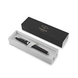 At once smart, polished and professional, the PARKER IM Matte Black CT is an ideal partner with unlimited potential. The sleek tapered shape pairs seamlessly with innovative designs to make a striking statement. The chrome finish trims compliment the resolutely modern matte black lacquered body, making this PARKER pen the perfect writing instrument for students and professionals. The nib is made from durable stainless steel and shaped to provide the optimal writing angle. For use with QUINK ink cartridges or convertible to ink bottle filling. Every detail is refined to deliver a writing experience that is at once dependable and faithful to over 125 years of PARKER brand heritage.
