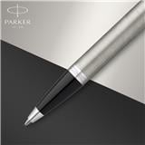 • Sandblast stainless steel barrel with a silvery sheen is engraved with an intricate modern pattern, complemented by gold trims and the signature PARKER arrow clip