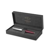 Durable, glossy burgundy precious resin barrel and stainless steel cap with palladium finish trims and the signature Parker arrow clip