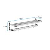 This stainless steel towel rack with clothes hooks features a space-saving and minimalist design, offering durable and practical storage for everyday use in bathrooms, bedrooms, or laundry areas.