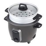 Aluminum steamer & lid for easy monitoring. Handle with rice spoon hook for easy access.