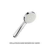 A compact and durable STELLA round hand shower with a 100mm head, offering smooth water flow, easy compatibility, and a minimalist design for comfortable everyday showering.