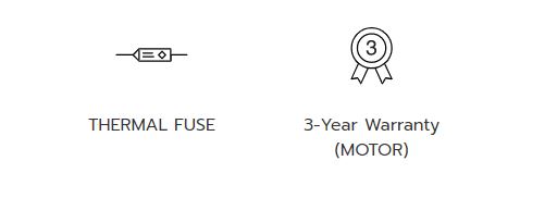 • High efficiency motor with Thermal fuse automatically to cut off the fire when the motor heat.