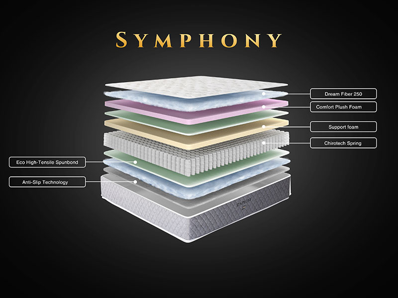 Treat yourself to a luxurious sleeping experience with this comfortable mattress from KING KOIL SYMPHONY series. This mattress is equipped with High-density foam layer and 2.3 m i-Coil System which are independently encased coils, reducing motion disturbance and body pressure points giving you the ultimate in comfort and support. Plus, the Air flow Circulation helps reduce heat buildup, which can make sleeping uncomfortable with 10-Year Spring Warranty.